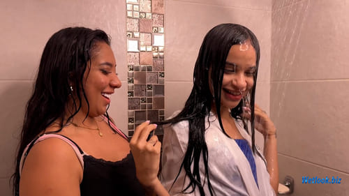 This dynamic wetlook set captures a natural shower moment featuring two women experiencing a fully clothed water session together. Warm water flows over everyday outfits, slowly transforming dry fabrics into soaked textures that cling and move with every motion.