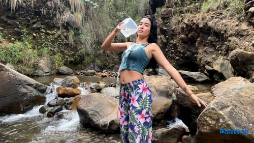 Perfect for fans of outdoor wetlook, river scenes, soaked clothes, and natural environments.