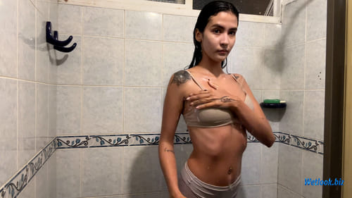 As the session continues, she slowly removes the soaked dress, revealing her smooth, natural wetlook style in simple nude-toned underwear. The water enhances every detail — from her wet hair to the soaked fabric — creating a calm, intimate wetlook atmosphere. A soft, charming and authentic shower set featuring natural movement, soaked clothes, and expressive wet textures.