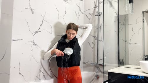 The set focuses on realism and atmosphere: water flowing over soaked clothes, slow transitions between poses, and natural body movement. Different angles highlight the contrast between dry and wet fabric, while the shower setting adds an authentic lifestyle feel. The session evolves step by step, showing how soaked clothes behave in motion and stillness.